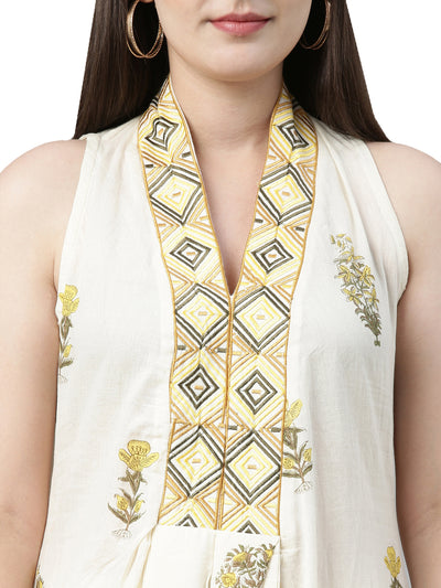 Neerus Women Cream-Coloured Printed Kurta with Salwar