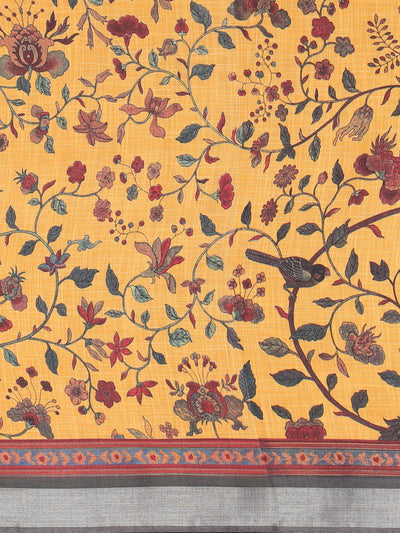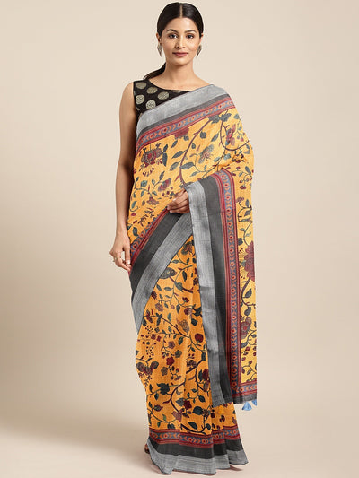 Neeru's Yellow Printed Saree With Blouse.