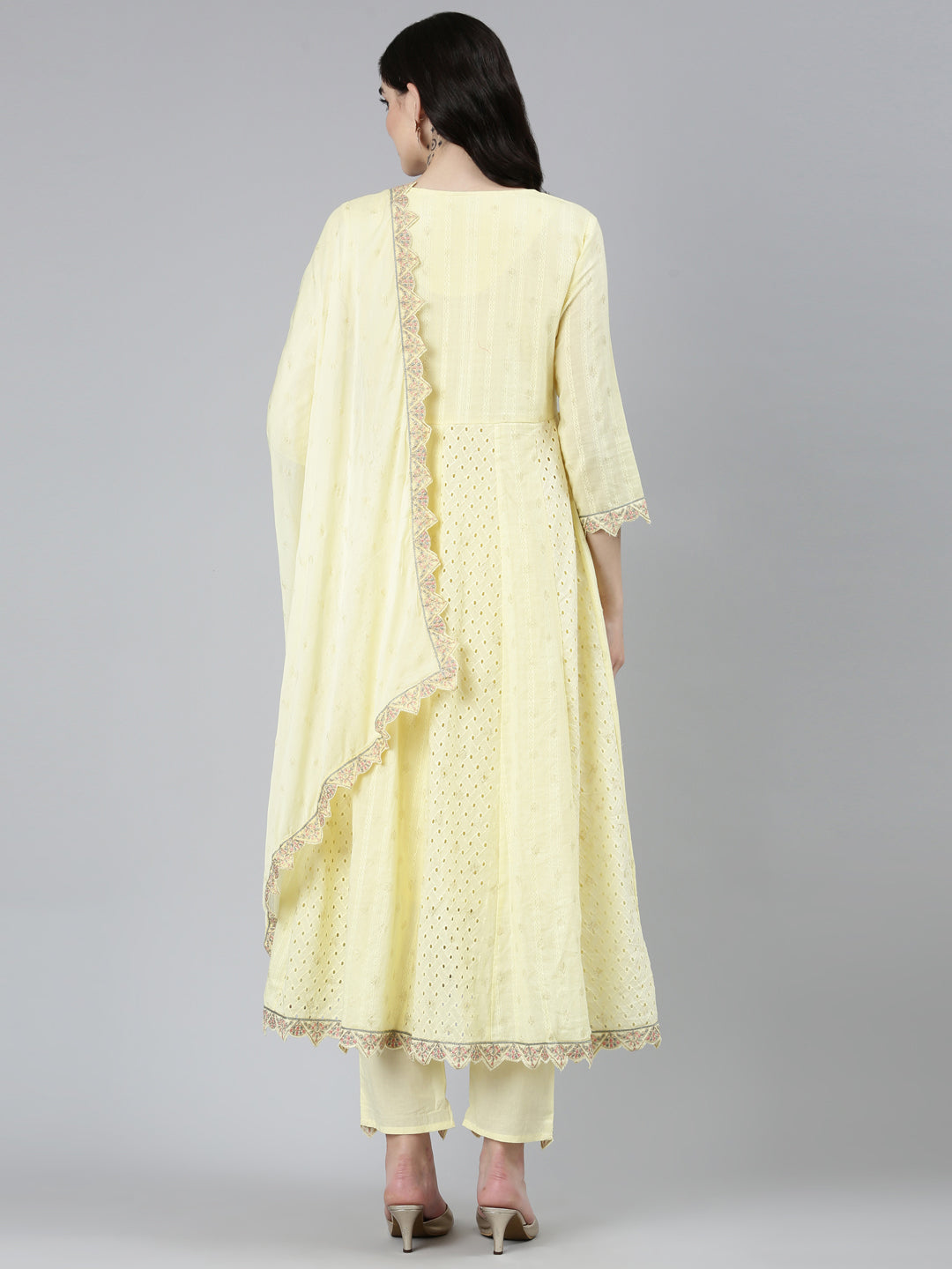 Neerus Yellow Regular Straight Ethnic Motifs Kurta Sets And Trousers With Dupatta