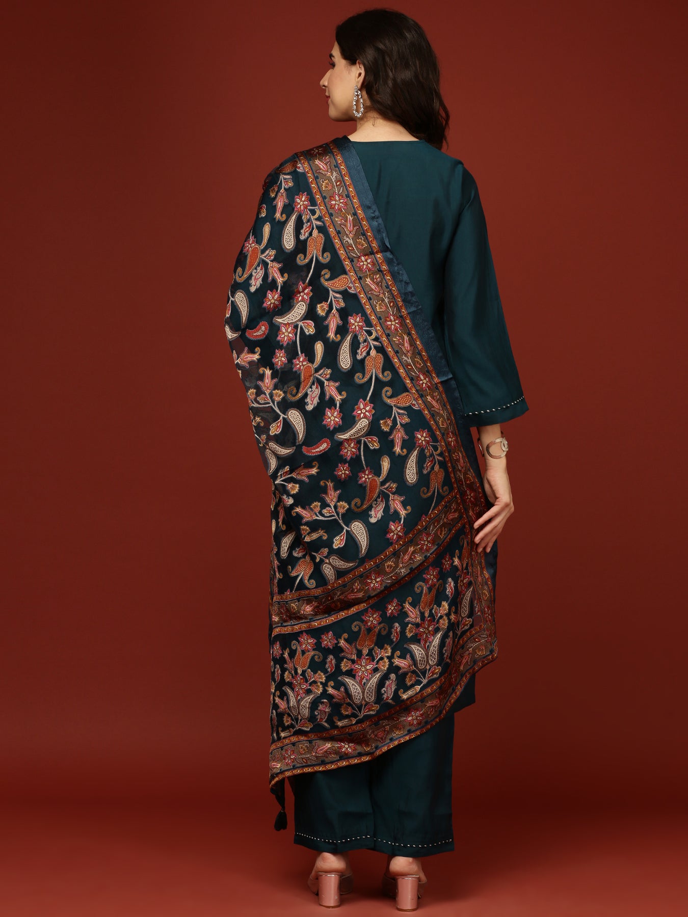 Elevate your wardrobe with the Peacock Modal Silk Three Piece Suit Set, crafted for refined elegance and comfort. This luxurious ensemble combines the smooth, breathable feel of modal silk with a timeless design, offering a perfect blend of style and sophistication. Ideal for formal occasions or upscale gatherings, the set ensures you stand out with subtle grace and impeccable tailoring.