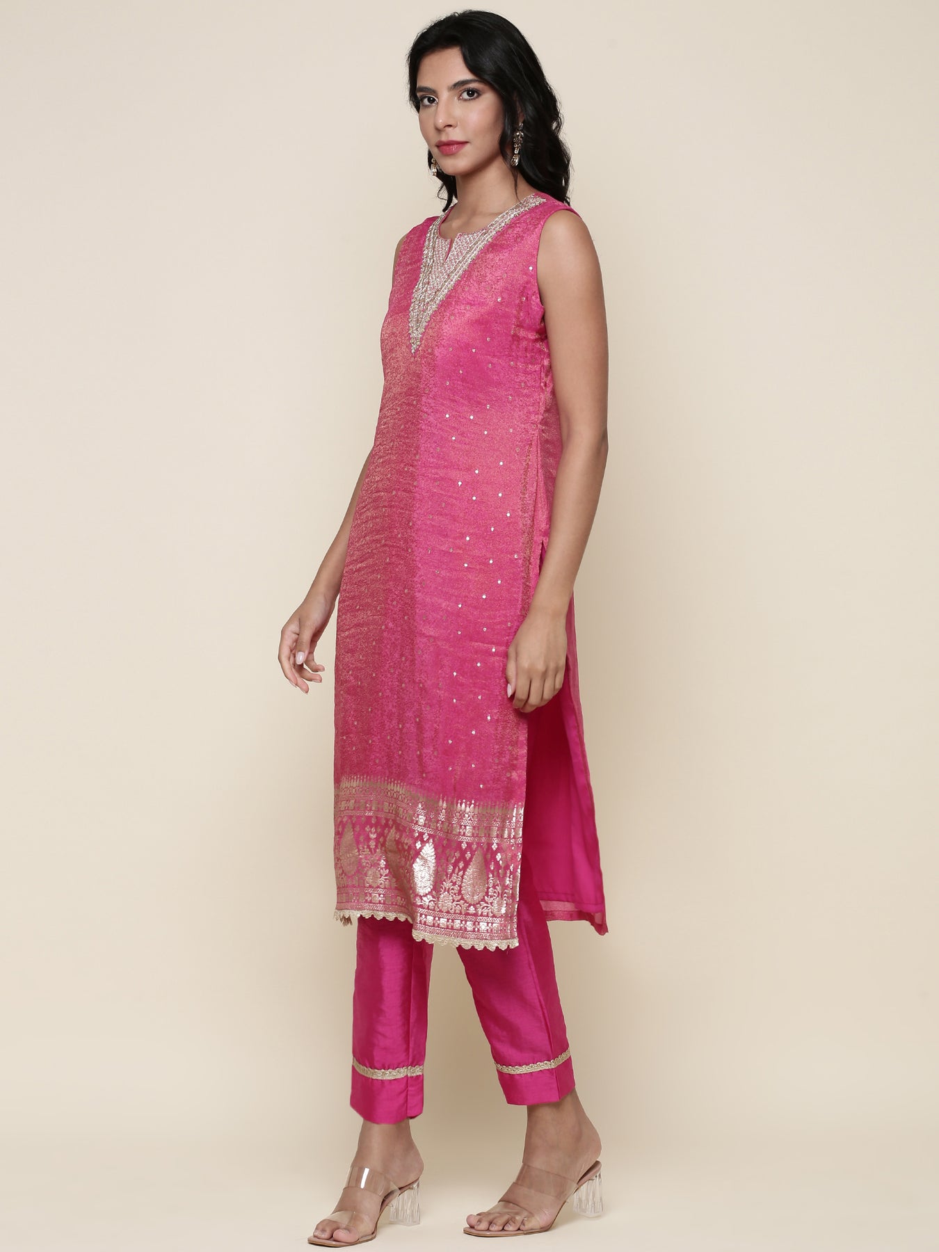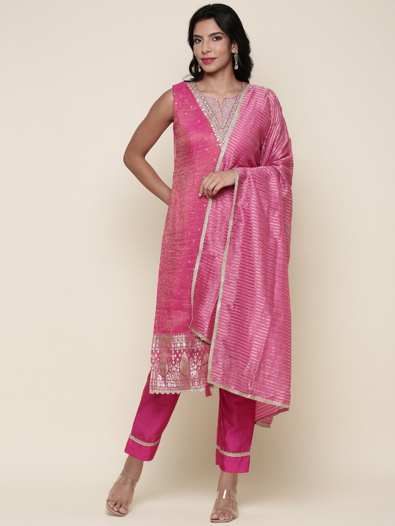 This Pink Tissue Suit Embroidered three-piece set offers a graceful blend of comfort and elegance. Crafted with soft tissue fabric, it ensures breathability and ease throughout the day. The intricate embroidery adds a delicate, stylish touch, making it suitable for both casual and festive occasions. This combination of fabric and design helps you look polished while feeling comfortable, supporting your style needs effortlessly.