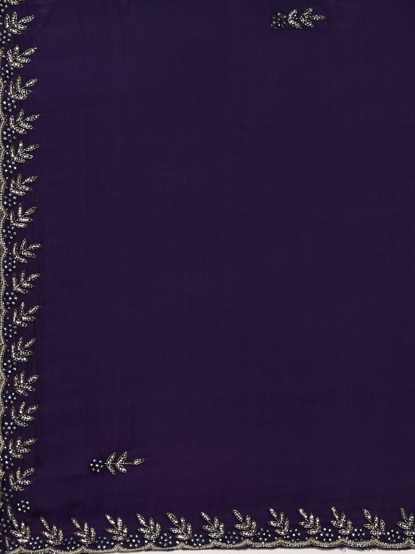 Crafted from delicate Jimmy tissue fabric, this purple saree features meticulous hand embroidery that highlights traditional craftsmanship. Its fine texture offers a lightweight, elegant drape suitable for special occasions. The rich purple shade combined with detailed embroidery brings a refined and sophisticated appeal, making it an excellent choice for those appreciating authentic artisanal textiles.