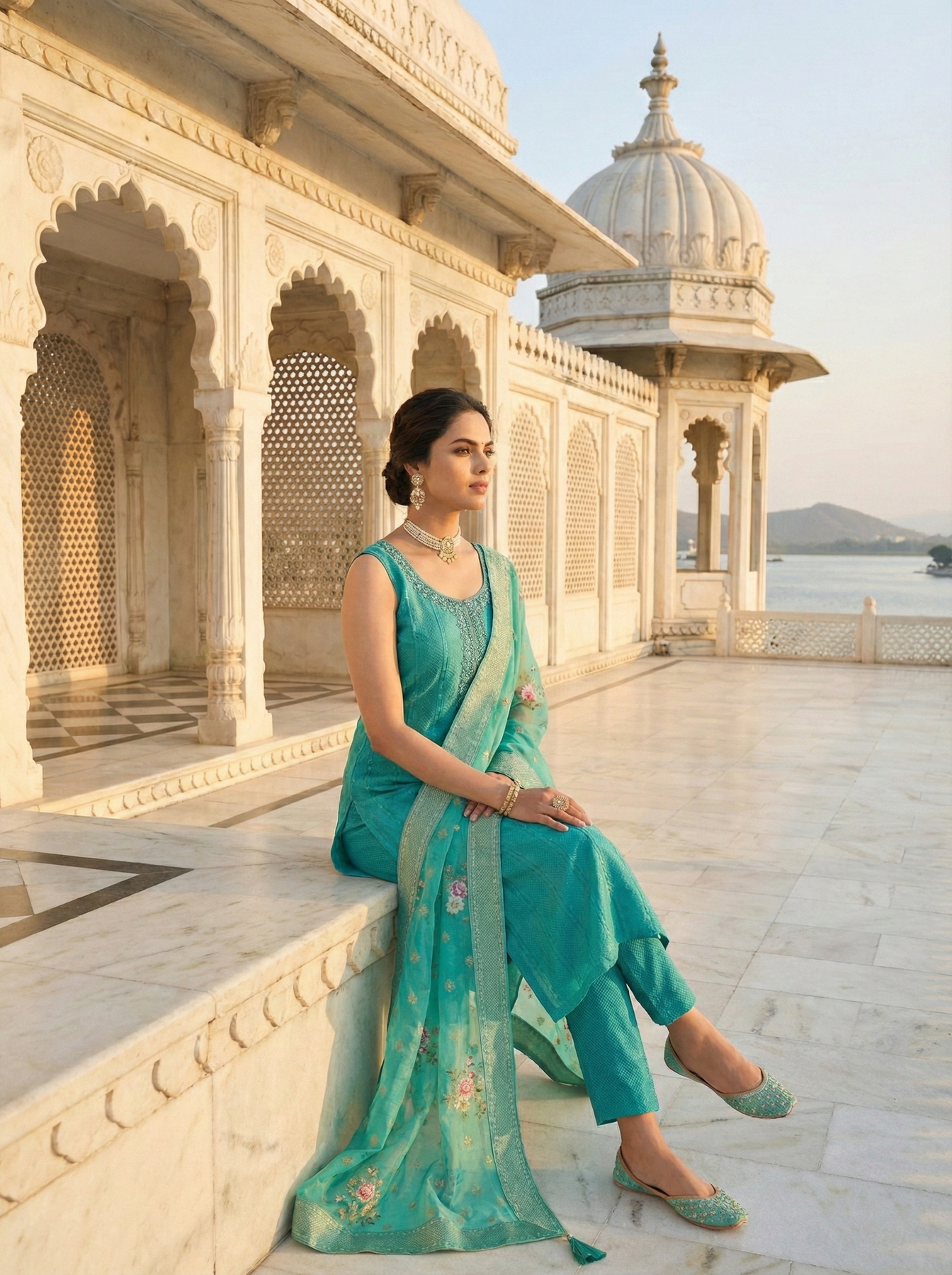 Elevate your formal wardrobe with this exquisite three-piece suit set, meticulously crafted from premium tissue fabric. The intricate stone work detailing adds sophisticated embellishment across the ensemble, creating a refined aesthetic perfect for weddings, celebrations, and special occasions. This versatile set combines traditional craftsmanship with contemporary styling, offering impeccable tailoring and comfort. The coordinated pieces work seamlessly together, allowing you to make a distinguished impression with understated elegance and timeless appeal.