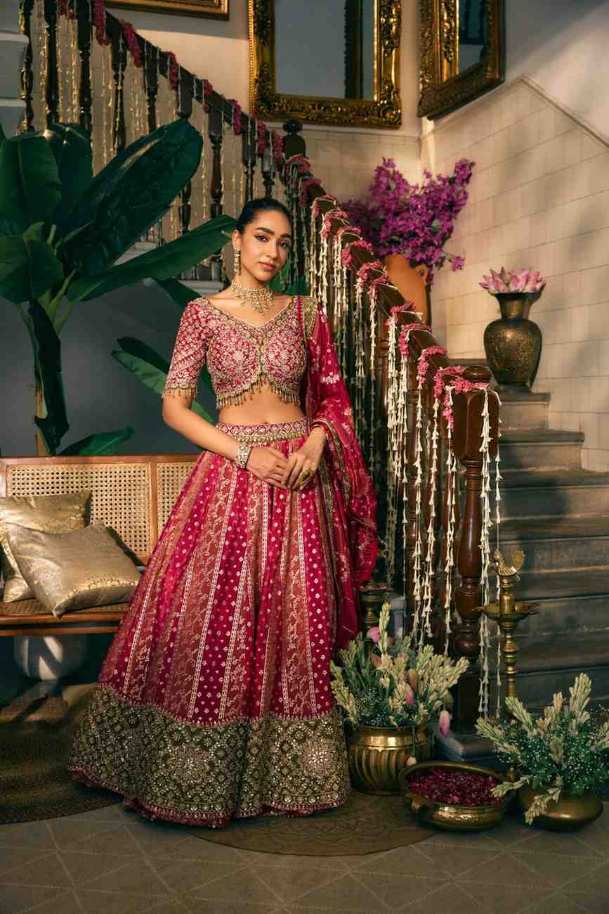 Rani Pink Tissue Banaras Hand Embroidery Ghagra Set