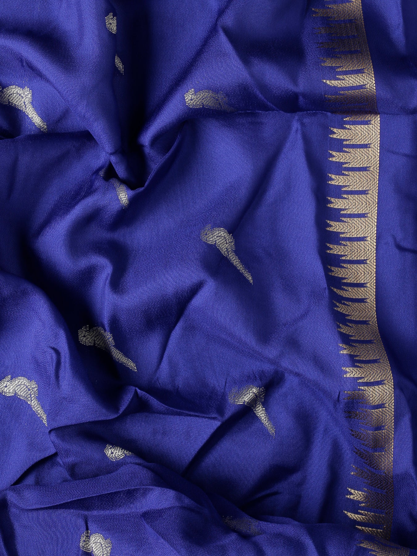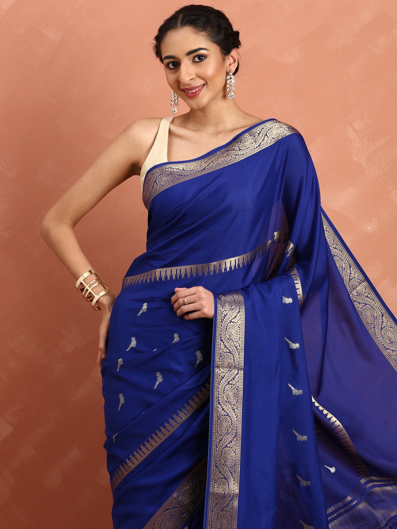 Elevate your elegance with this royal blue Mysore silk saree, featuring exquisite pichvai motifs that showcase traditional artistry. The luxurious silk fabric offers a smooth, rich texture perfect for festive occasions and celebrations. Its vibrant royal blue hue enhances your presence, while the intricate designs add a timeless charm. Ideal for making a lasting impression, this saree blends heritage craftsmanship with refined style effortlessly. Embrace grace and sophistication in every drape.